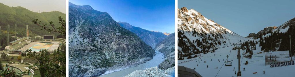 - Take a cable car ride to Kok Tobe Hill offering panoramic views of the city and the Tian Shan Mountains. Visit Medeu Ice Skating Rink, the world’s highest skating rink, and enjoy breathtaking scenery at Shymbulak Ski Resort.