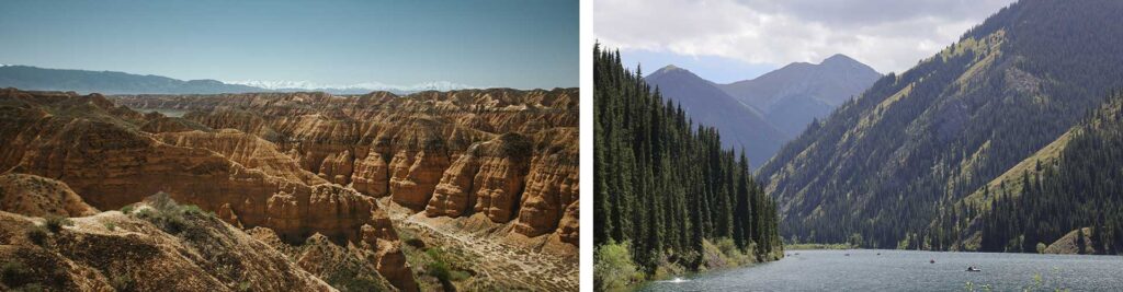 - Experience the surreal beauty of Charyn Canyon, often called the “Grand Canyon of Central Asia,” and discover the tranquility of Kolsai Lake, surrounded by alpine forests.
