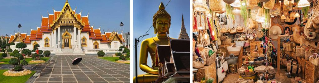 - Wat Benchamabophit (Marble Temple): A stunning architectural masterpiece made of Italian marble.